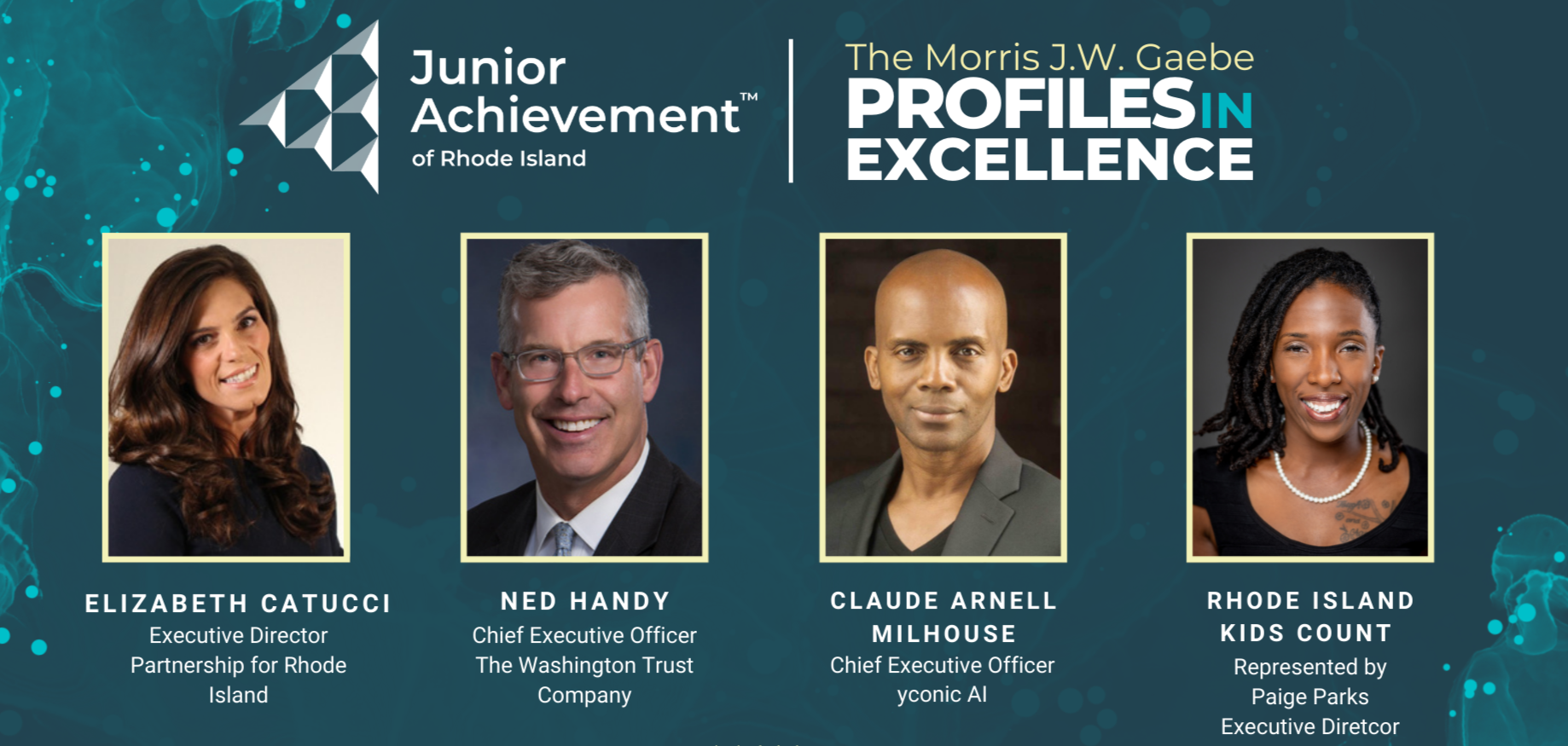 Junior Achievement of Rhode Island, Inc. instituted the Morris J.W. Gaebe Profile in Excellence Award to honor leaders or organizations demonstrating excellence in the Rhode Island Community. Today the award is Junior Achievement’s highest honor and carries the name of Morris J.W. Gaebe, Chancellor Emeritus of Johnson & Wales University. The recipients of the award must have demonstrated courageous thinking and actions, vision and innovation, inspiring leadership, and community mindedness.